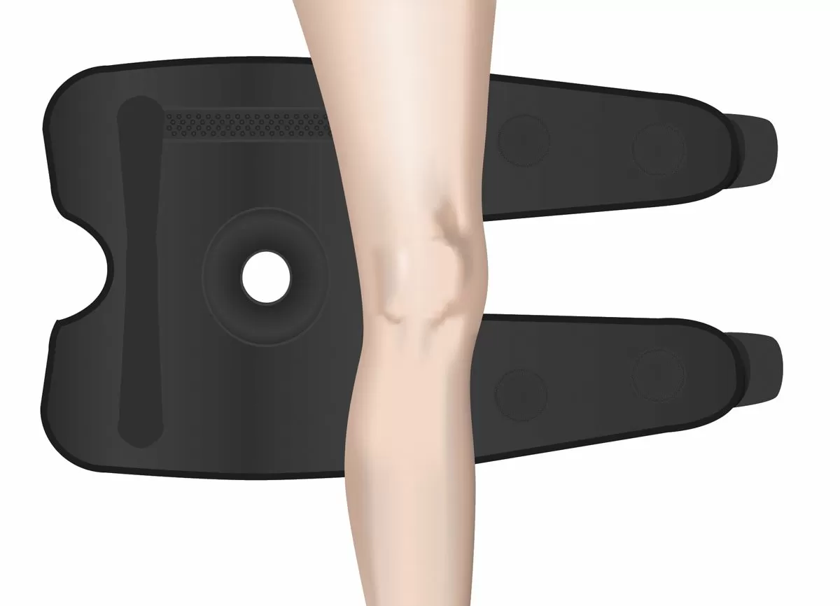 - Кольцо из двойного слоя пенополиуретана мягко фиксирует и стабилизирует коленную чашечку, не сдавливая ткани вокруг сустава, что особенно важно при нарастающем отеке