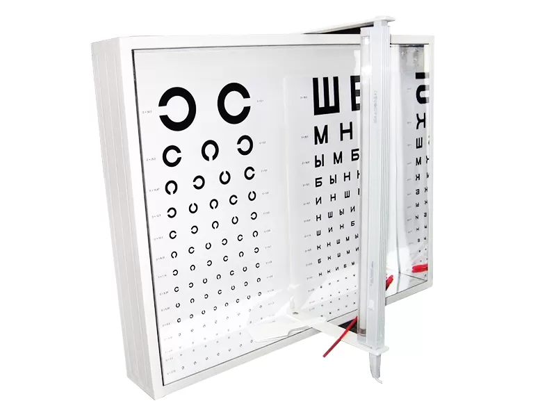 Источник света: люминесцентная лампа, 220 вольт, электрической мощностью 8 Вт, что соответствует 40 ваттам лампы накаливания, обеспечивает достаточное по интенсивности равномерное освещение таблиц не 700 ЛК.