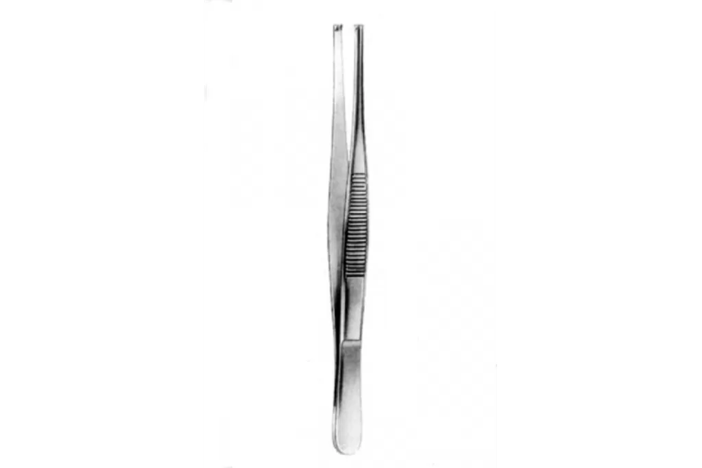 Анатомический пинцет применяется для прочного удержания плотных тканей (кожи, краёв раны и т .п.). Рабочая часть имеет зубцы.