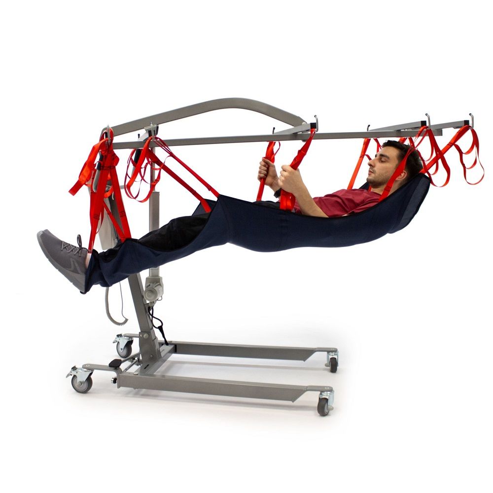 В комплекте с подъемником есть гамак. Обращаем ваше внимание, что для безопасной транспортировки больного, таз пациента должен быть размещен между двумя центральными швами гамака.