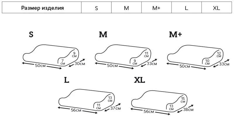 - наличие нескольких типоразмеров позволяет правильно подобрать подушку для людей разной комплекции