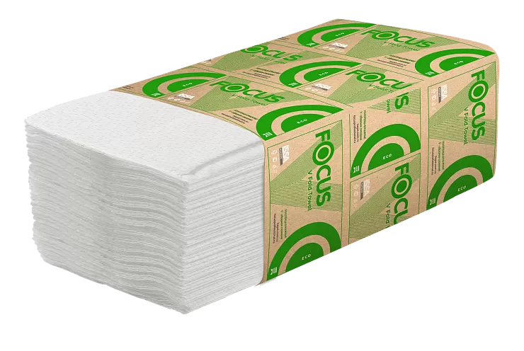 Полотенца бумажные листовые Focus Eco V-сложения 1-слойные 15 пачек по 200 листов (артикул производителя 5049975).