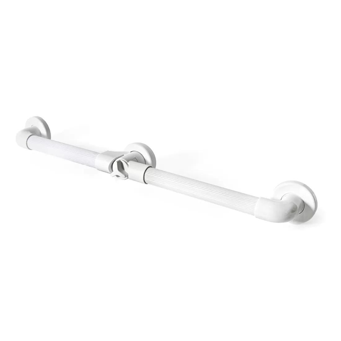 Поручень выполнен из гигиенического ударопрочного пластика. Выдерживает нагрузку до 115 кг. Крепеж идет в комплекте.