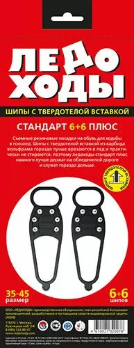 Диаметр рабочей части шипа обычных ледоходов 3,5 мм. И «острый» конец его на самом деле плоский. По известной формуле S = ПR2, площадь рабочего конца такого шипа составляет 9,62 мм. кв. и на твердом льду такие шипы, плоские и широкие на концах, иногда могут скользить. Однако их нельзя сделать меньше диаметром, иначе они сточатся за неделю. Но так как вольфрамовая вставка практически не стачивается, то в «стандарт 6х6 плюс» мы сделали ее диаметр ощутимо меньше – 2,35 мм. При этом и площадь ее сечения всего стала лишь 4,33 мм. кв. Кроме того, на конце вставка округлая и площадь непосредственно рабочей части твердотелого шипа стала еще меньше ~ 1,9 мм. кв. вместо 9,62 мм. кв. Именно поэтому под действием веса человека такие шипы в несколько раз лучше вгрызаются в лед и надежнее держат, предохраняя от падений. Кроме того, высота самого шипа стала чуть меньше (теперь не нужно делать «запас на износ»), так что ходить в таких ледоходах стало еще удобнее.