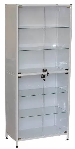 - Шкаф имеет два отделения, каждое из которых имеет две стеклянные двери с замком.