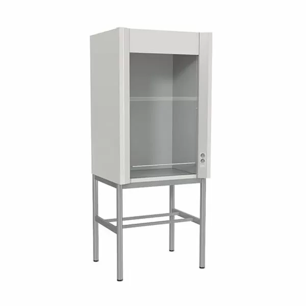 - Шкаф оснащен ударопрочным стеклом с противовесами (можно зафиксировать в любом положении), лампой для освещения рабочей камеры, без вентилятора