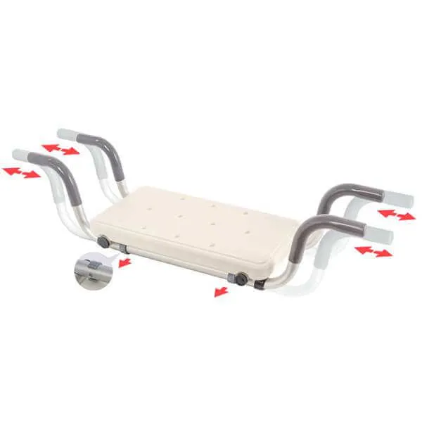Сиденье для ванны 10410N с отверстиями для отвода воды. Сиденье имеет возможность регулировки ширины под размер ванны в диапазоне 72-82 см. Само сиденье изготовлено из влагоотталкивающего гигиенического пластика. Имеет отверстия для стока воды и мягкие наконечники для плотного прилегания крепежей. Подходит для большинства ванн. Для установки не требуется специальных навыков.