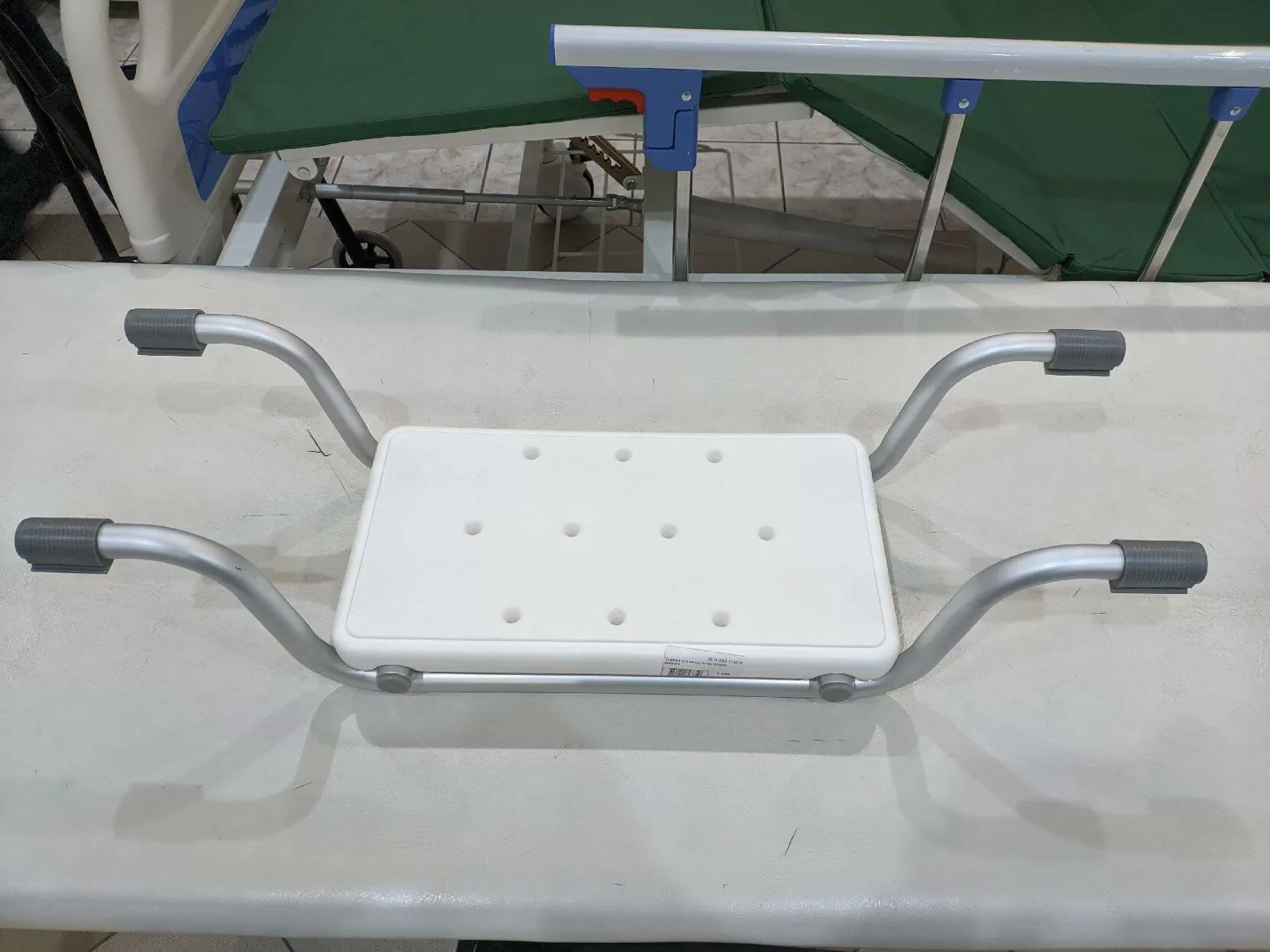 - На раме имеются несъемные резиновые накладки. Поскольку с нижней стороны форма накладки прямоугольная, сиденье плотно прилегает к поверхности ванны, и вероятность соскальзывания сводится к минимуму.