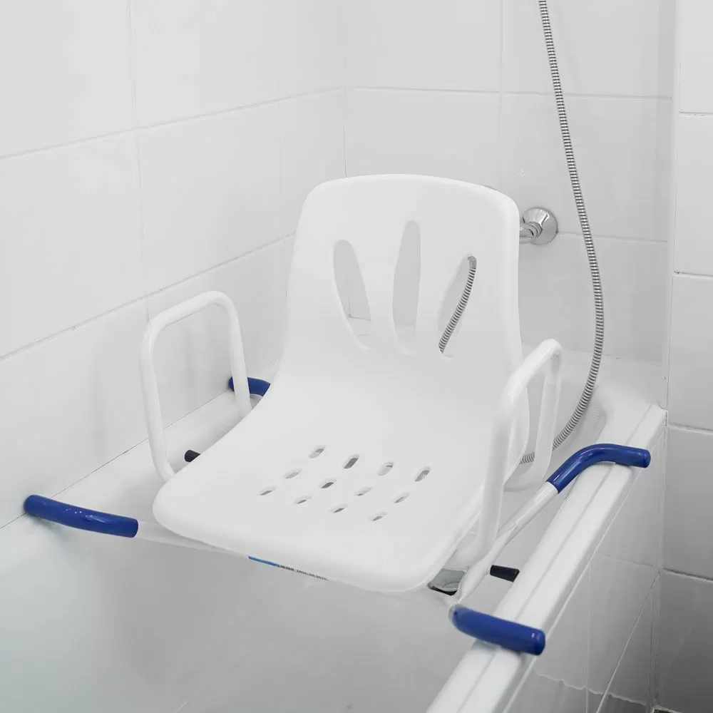Сиденье снабжено поворотным механизмом, с помощью которого можно развернуть его на 90 градусов. Такой механизм делает использование сиденья еще легче и безопаснее: для того чтобы сесть, нужно будет повернуть сиденье к себе, сесть, приподнять ноги и развернуться в ванну. Усилий потребуется еще меньше, чем с обычными сиденьями. Есть фиксаторы положения, которые предотвратят спонтанные повороты кресла.