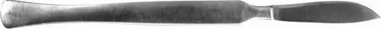 Скальпель брюшистый средний, длиной 150 мм, разработан для выполнения длинных и широких, но не глубоких разрезов. Его используют при выполнении операций, для разрезания мягких биологических тканей, для работы с тканями, когда необходимо их послойное разделение.