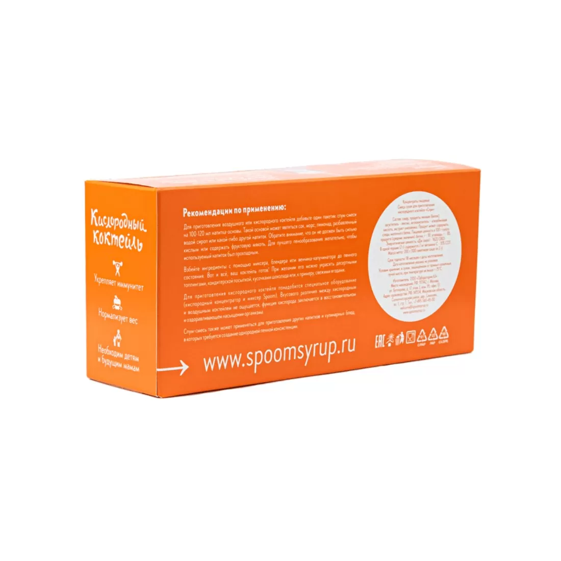 - Смесь для кислородных коктейлей Spoom уже готова к приготовлению полезного напитка – нужны только пузырьки O2 и жидкость;