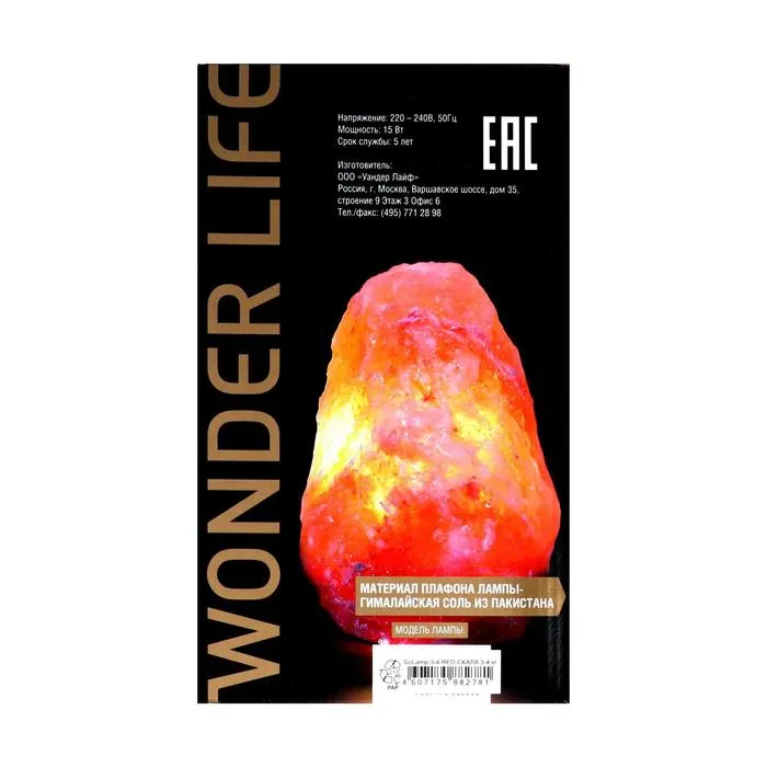 - Соляные лампы Wonder Life сделаны в России, фурнитура – удлиненный шнур 1,5 метра и крепежи – немецкие.