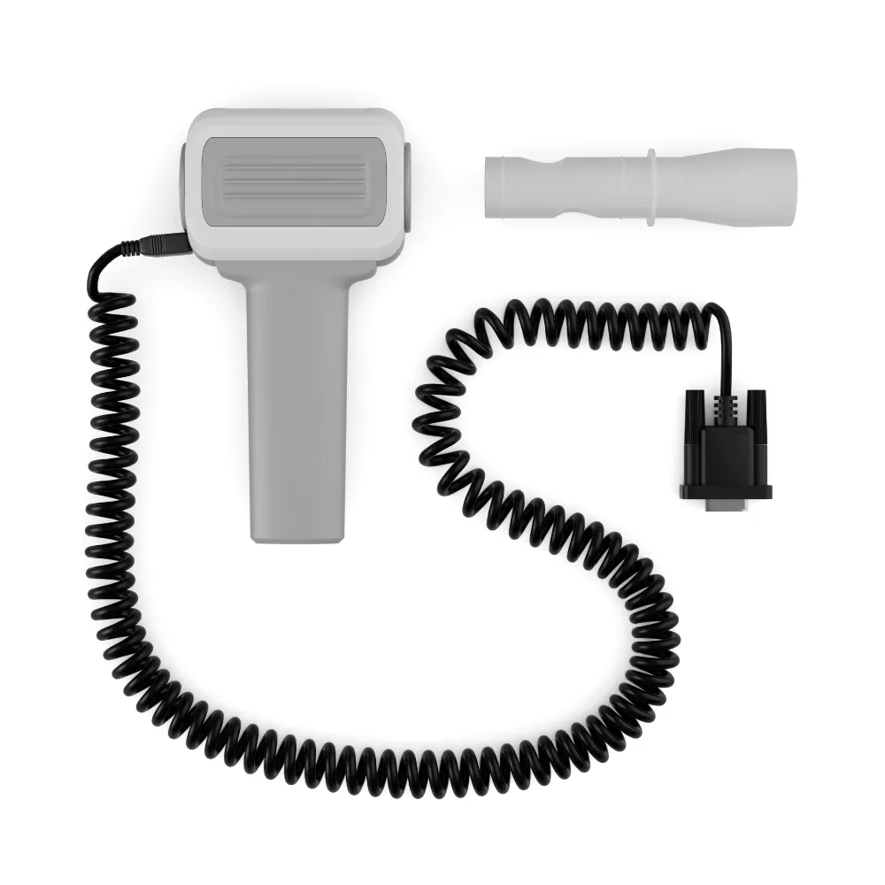 Датчик спирографа – это законченное устройство, в котором реализован алгоритм расчета потока воздуха. Датчик комплектуется мундштуками, которые герметично соединяются с прибором.