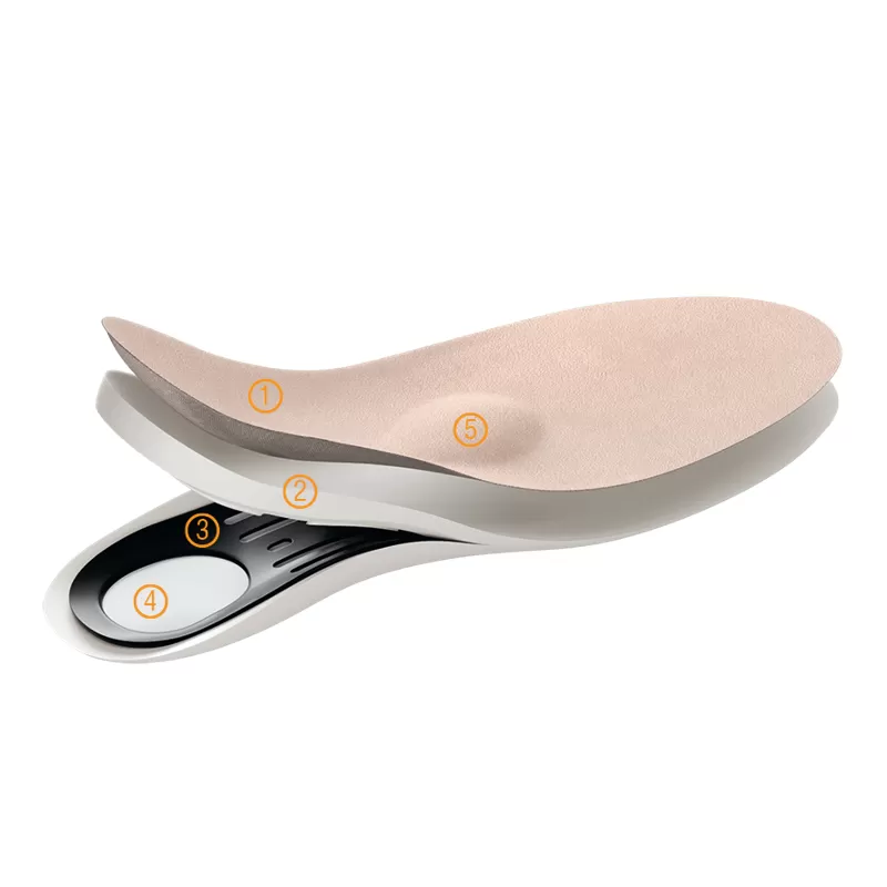 - Мягкий основной слой из полиуретана приобретает форму стопы и перераспределяет давление на мягкие ткани