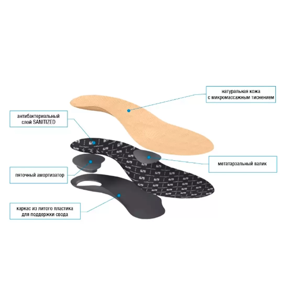 - антибактериальный нижний слой sanitized (Швейцария) обеспечивает выраженную гигиену стоп, минимизирует возникновения неприятного запаха в обуви;