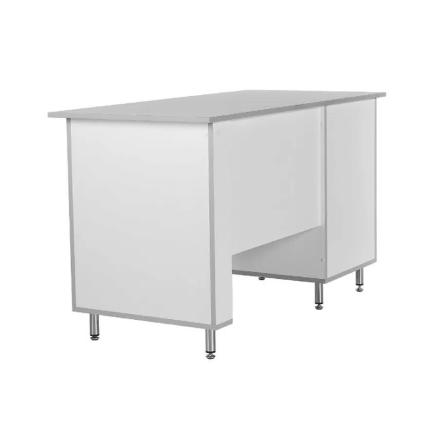 - Стол установлен на регулируемые по высоте хромированные опоры, глянцевая поверхность которых устойчива к коррозии, позволяет легко производить уборку и дезинфекцию помещений