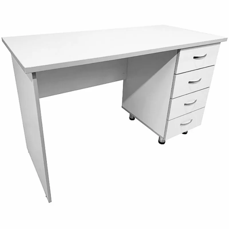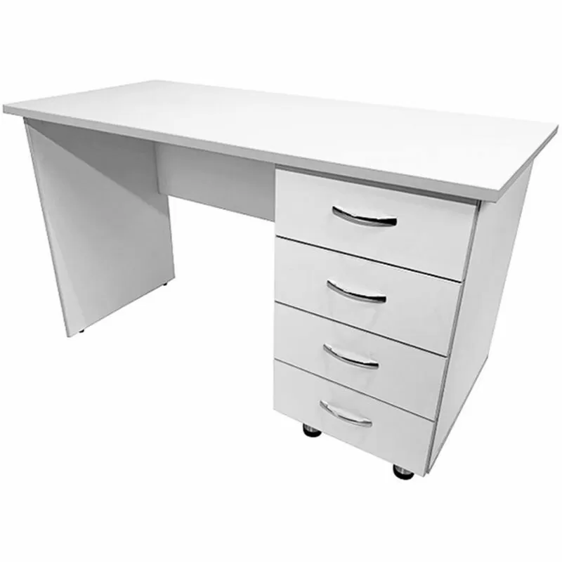 - Стол имеет одну тумбу с 4-мя выдвижными ящиками на роликовых направляющих, размеры тумбы — 368х502х612 мм