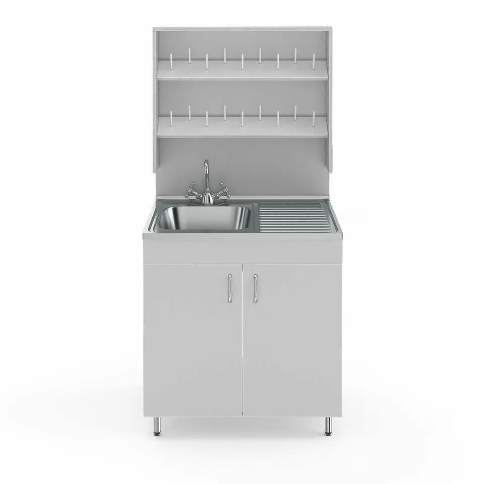 НВ-800 МО — это стол с одной мойкой из нержавеющей стали и с пластиковой сушилкой на 18 мест. Предназначен для работы стоя: высота до столешницы 85 см.