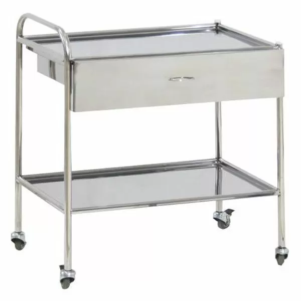 - Каркас столика ― сварная конструкция из нержавеющей стальной трубы, 2 полки и выдвижной ящик ― нержавеющий стальной лист