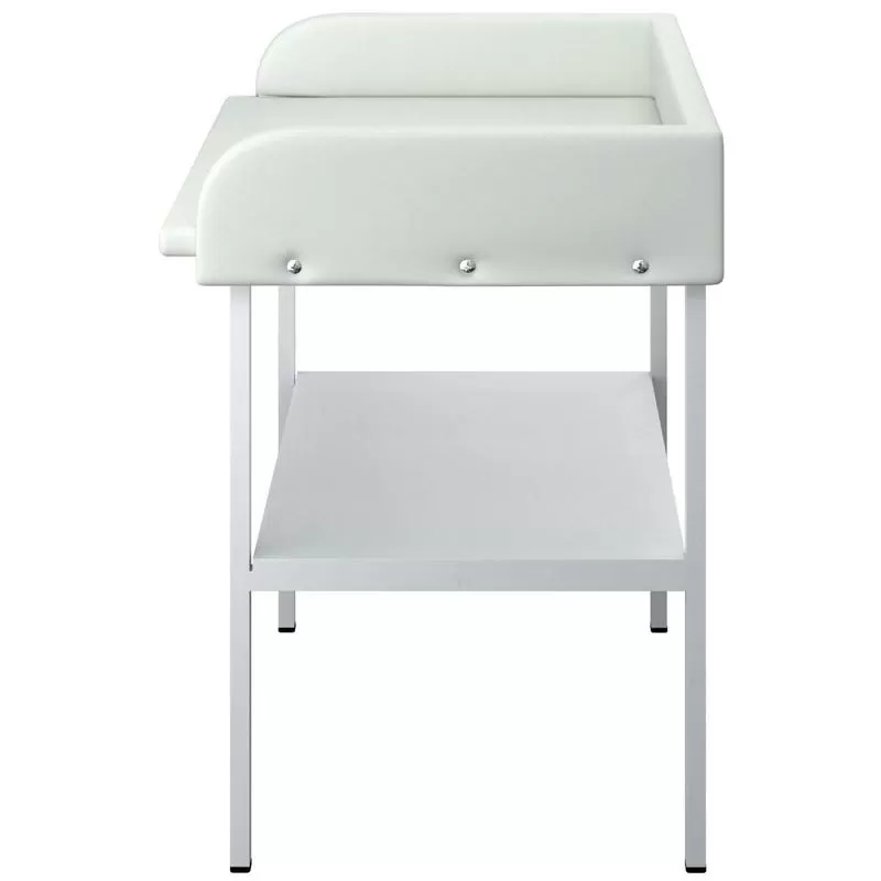 - Столешница и бортики изготовлены из фанеры с полумягкой обивкой из фактурной винилискожи, устойчивой к истиранию и воздействию дезинфицирующих средств