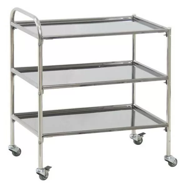 Столик процедурный передвижной СПп-02-МСК (5502) из нержавеющей стали с тремя полками предназначен для оснащения стоматологических, смотровых процедурных кабинетов больниц и поликлиник.