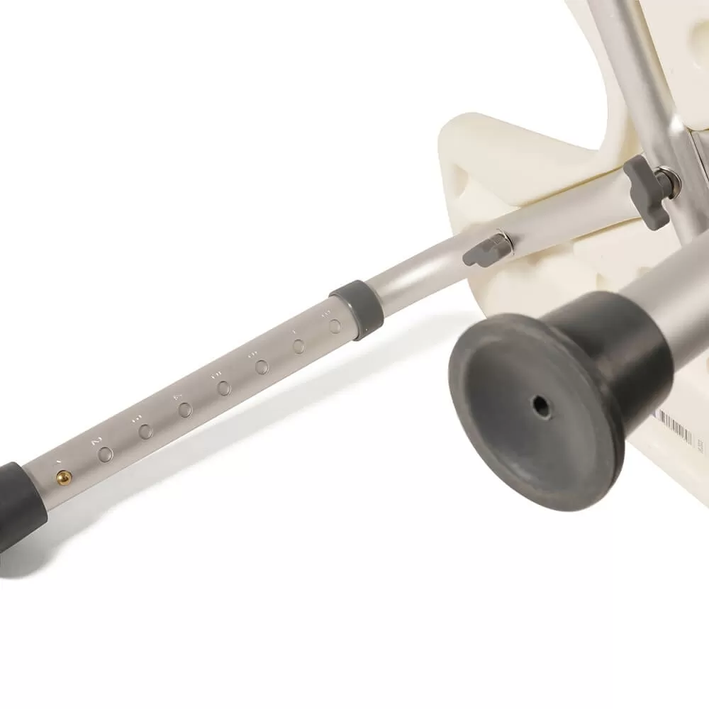 Основными особенностями стула являются наличие гигиенического выреза и боковых рукоятей. Собирать и разбирать изделие можно без использования инструментов. Ножки съемные и обладают противоскользящими насадками.