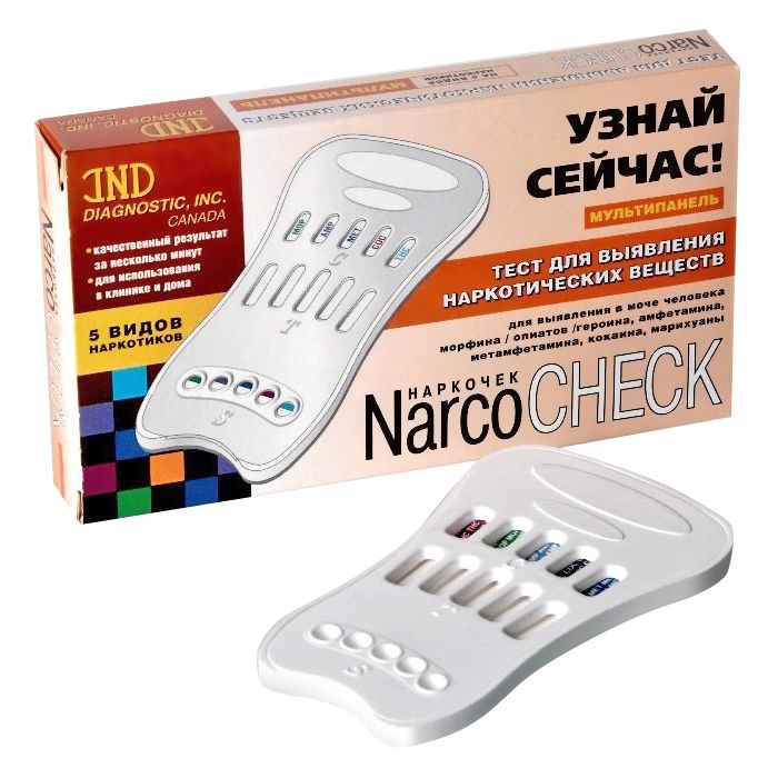 - Тест-мультипанель Narcocheck для одновременного выявления 5 видов наркотических в-в (марихуана, амфетамин, опиаты, метамфетамин, кокаин) непогружного типа в комплекте с пипеткой.