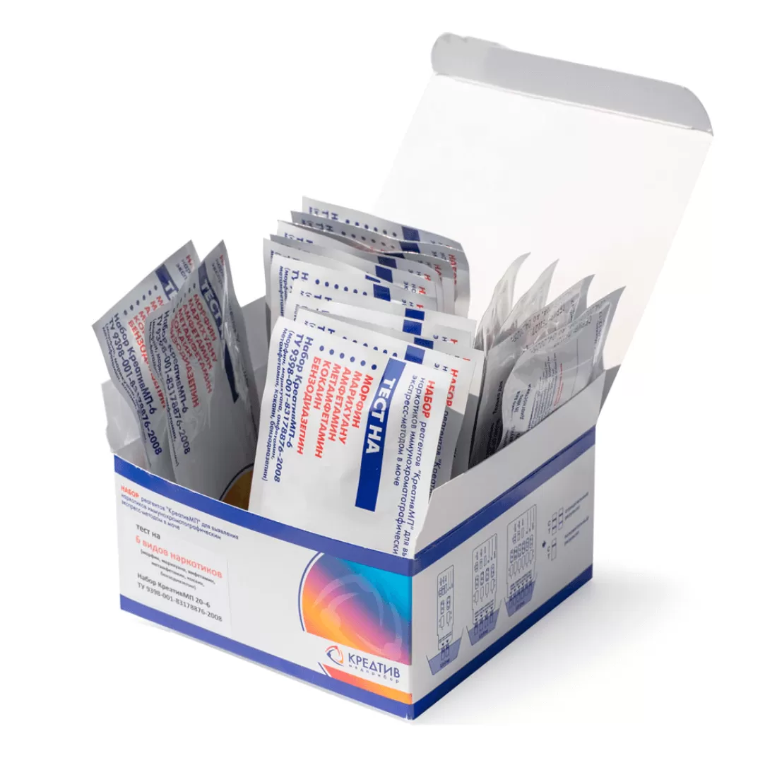 Тесты по моче КреативМП-6 для определения 6 видов наркотиков, 20 шт. Цена за упаковку из 20 штук.Мультипанель погружного типа, применяются для выявления факта употребления нескольких видов наркотиков.