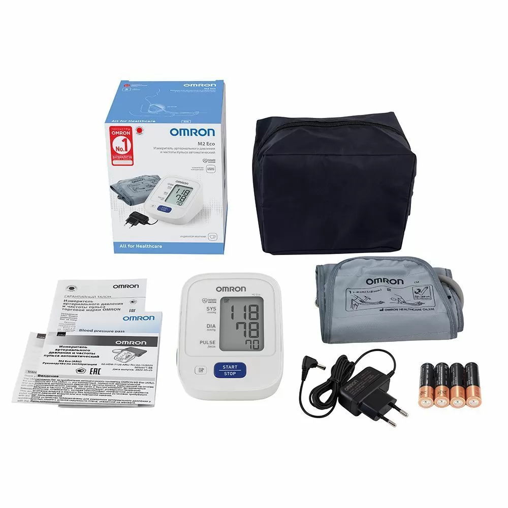OMRON M2 Eco – автоматический тонометр на плечо в комплектации с веерообразной манжетой и адаптером. Простое и быстрое измерение артериального давления и пульса.Предупредить инсульт в ваших силах!Тонометр OMRON помогает контролировать артериальную гипертонию — основной фактор риска развития инсульта.