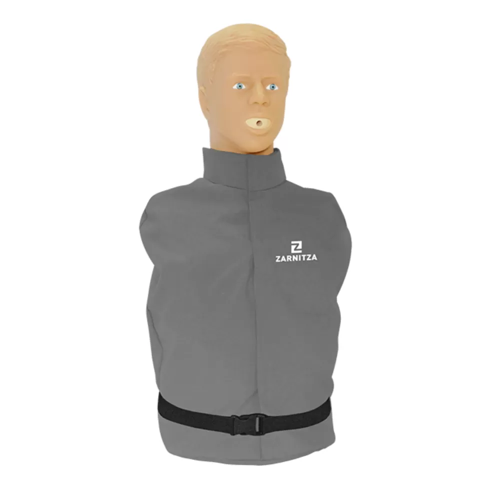 Тренажер-манекен представляет собой имитацию торса взрослого пострадавшего и предназначен для отработки приемов сердечно-легочной реанимации с возможностью контроля качества выполнения упражнений.Тренажер-манекен оборудован системой датчиков и устройств, предназначенных для имитации процессов жизнедеятельности человека, диагностируемых в полевых условиях, а также для контроля над правильностью проведения реанимационных мероприятий.