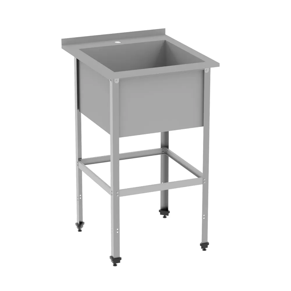 Ванна моечная односекционная с бортом ВМ-АБВ-О 530х585х870. Оборудована одной ёмкостью, подходит для мытья небольшого количества посуды на предприятиях общепита, или торговли. Может использоваться для оттаивания или обработки продуктов питания.