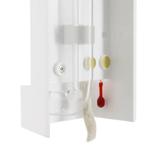 Состоят из пластмассового основания, на котором закреплены температурная шкала с двумя капиллярами, резервуар одного из которых увлажняется фитилем из ткани, опущенным в питатель с водой, и таблица для определения относительной влажности воздуха по разнице показаний «сухого» и «увлажненного». Питатель закреплен с внутренней стороны основания. Шкальная пластина и таблица – металлические.
