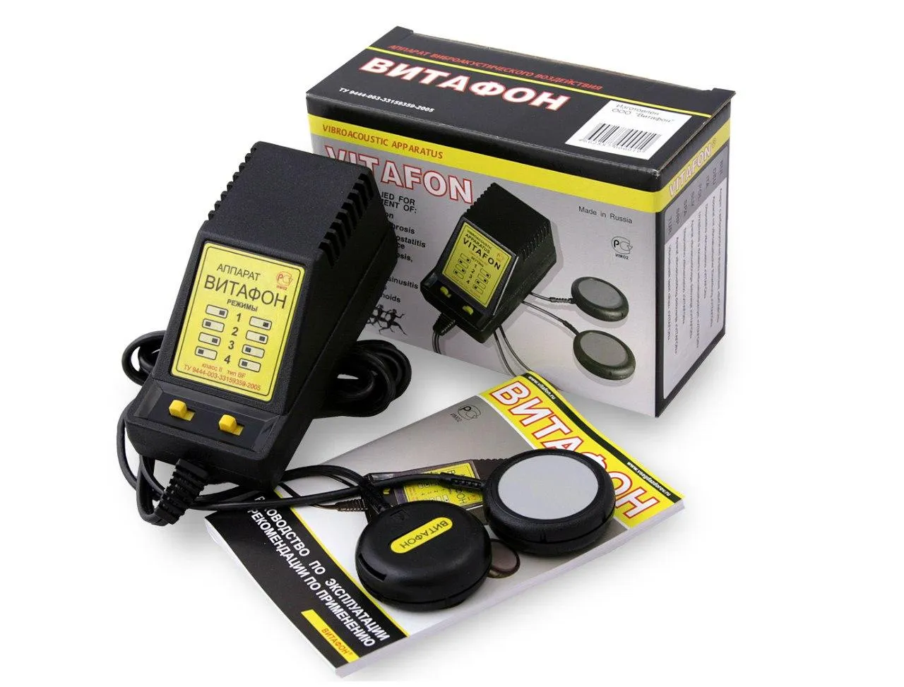 - «Витафон» ― самая простая, без таймера, и самая недорогая модель из серии виброакустических аппаратов, предназначенных для компенсации дефицита микровибрации в тканях организма. «Витафон» применяется для профилактики и лечения заболеваний, связанных с недостаточностью капиллярного кровотока, лимфотока и биофизических микровибраций в тканях организма.